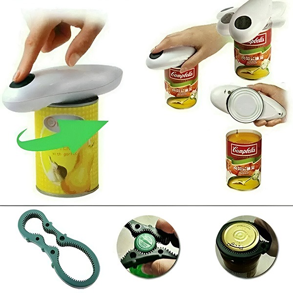 С натискането на един бутон нашата автоматична отварачка за консерви отваря консерви, без да полагате усилия и да се мъчите да ги отваряте ръчно.