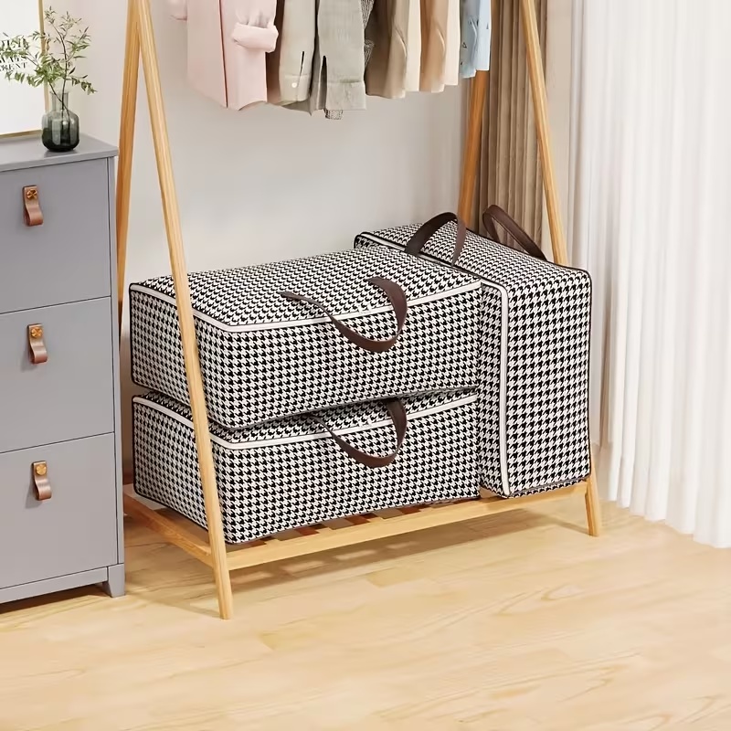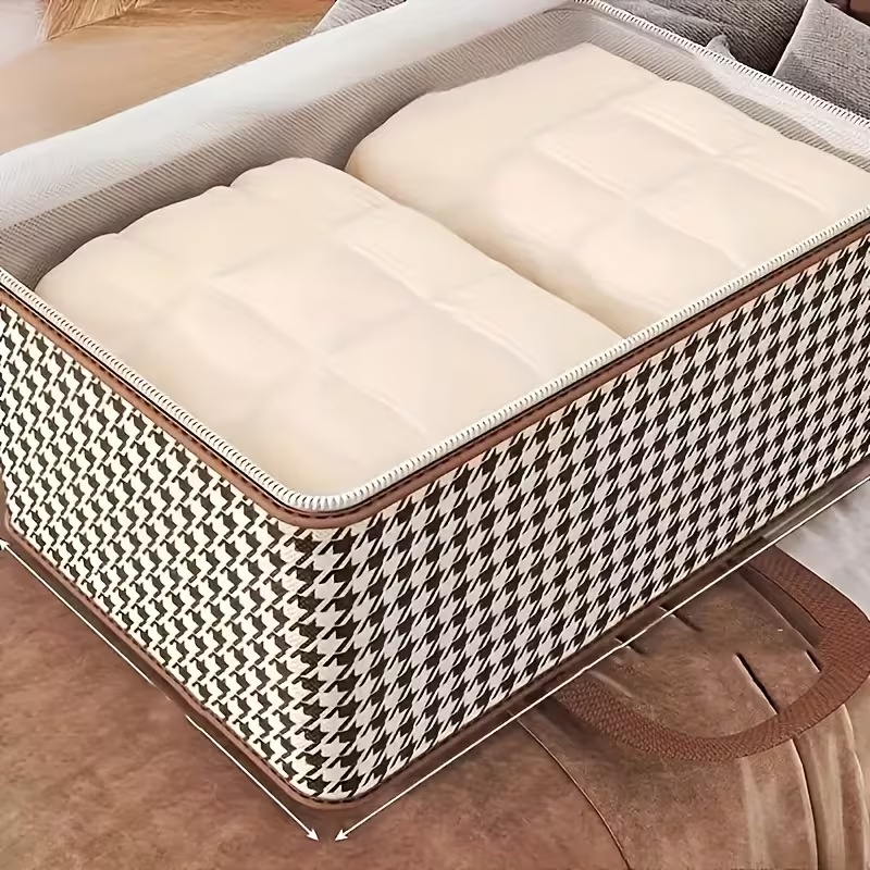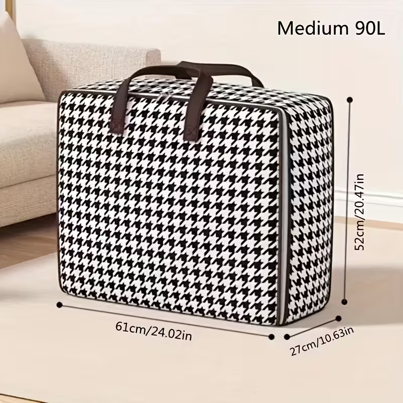 Чанта за съхранение с голям капацитет от 90 литра, която ви помага да организирате ефективно дрехите, одеялата и сезонните вещи.
