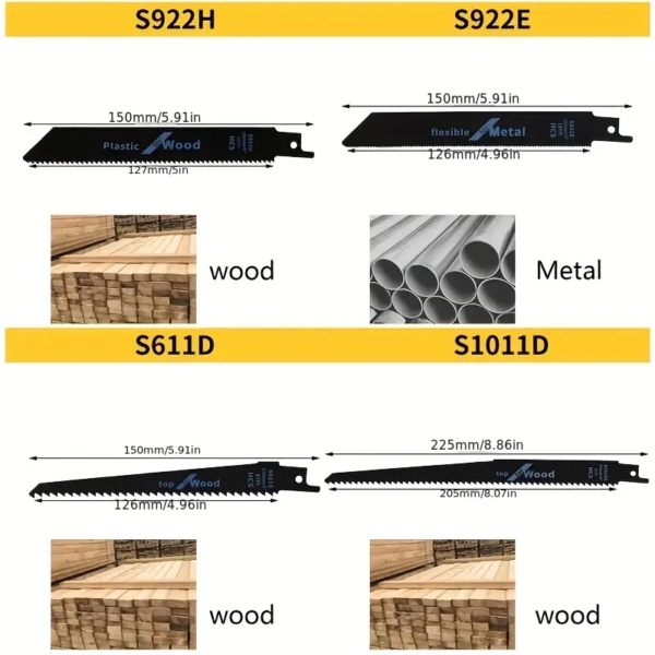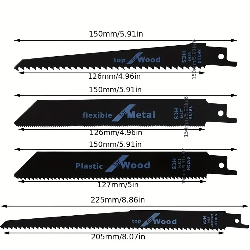 Комплект 4 бр. ножове за рязане на дърво, метал и пластмаса от високо въглеродна стомана, триони за дърво