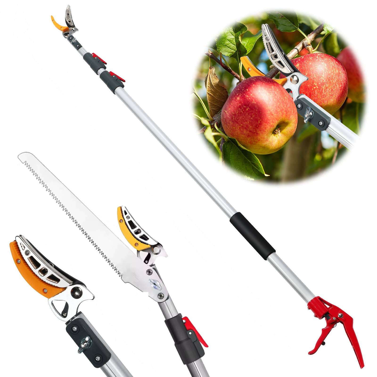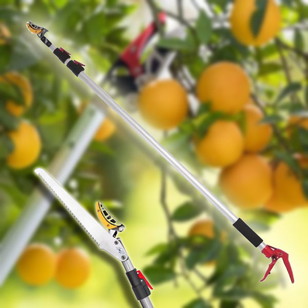 Идеален не само за бране на плодове, но и за рязане на цветя и храсти, пакетът включва както ножици, така и трион за подрязване на клони на височина.